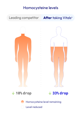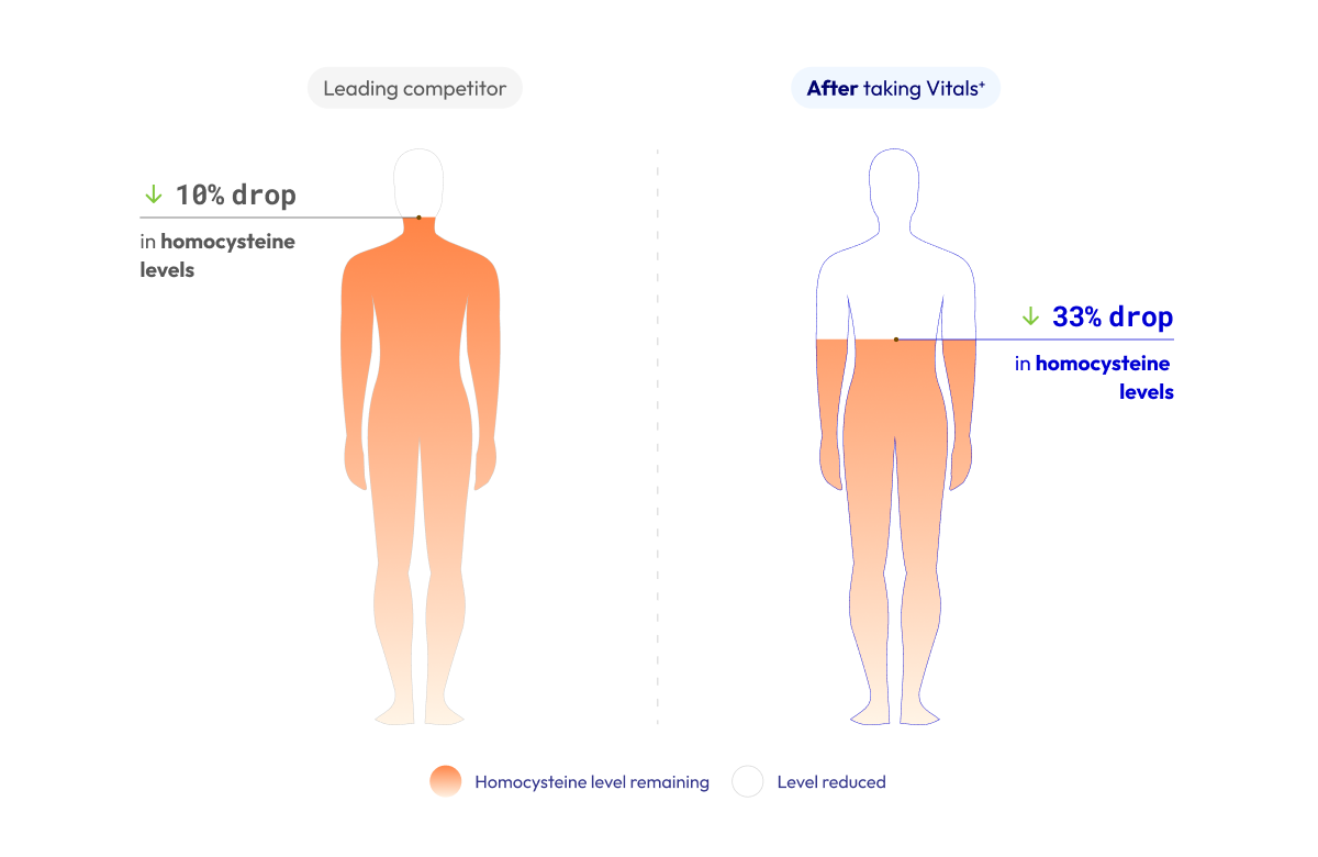 Plus, homocysteine concentrations fell by 33%, indicating more efficient B-vitamin metabolism supporting heart, brain and cellular pathways.